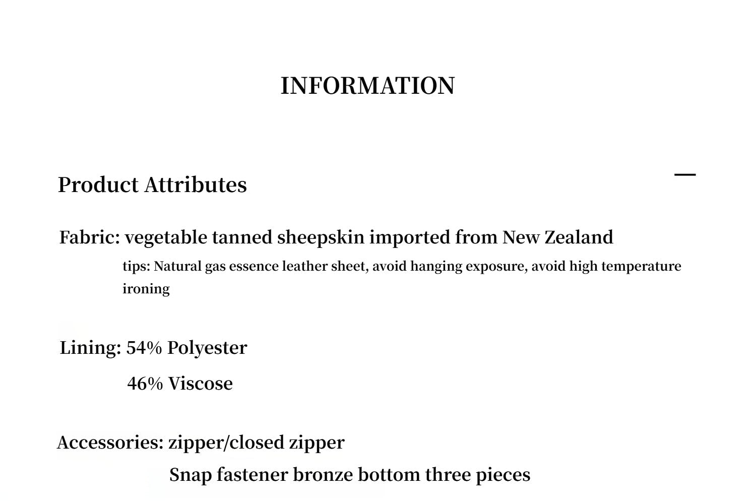 Vegetable tanned technology, grain texture clear and delicate, soft touch. Leather washing and garment washing combination, high gloss and casual, durable and wearable, superior drape on the upper body are not taut and not bound, free and easy, the later natural aging to raise the more precipitation the more vintage feeling!